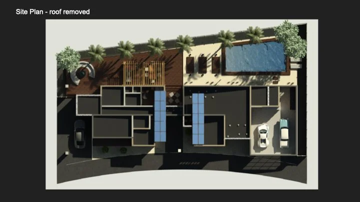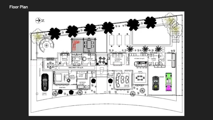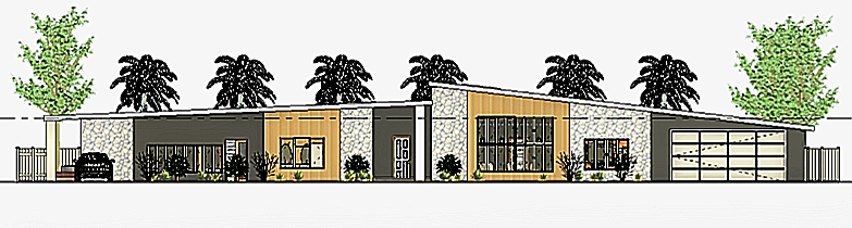 Kennedy High School students were tasked with developing a 3,000-square-foot, single-story Type V wood-framed primary residence in Palm Springs, with a minimum of 3 bedrooms and 3½ bathrooms, designed under Uniform Building Code standards and 9’+ plate heights. The program includes a centralized great room integrating a family lounge, concealed kitchen (visually screened from entry), formal dining area, built-in bar, and adjacent home theater. A functional fireplace is required.